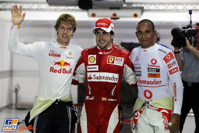 A priori, con el resultado del viernes que luego se extendió el sábado por la mañana, daba la sensación que la pole era propiedad de Vettel, porque el germano había dominado ayer y la tercera sesión previa a la clasificación, demostrando que tiene el mejor coche este fin de semana. Pero Ferrari tiene a Fernando Alonso y en un nivel superlativo el asturiano se las arregló solo para defenderse de sus rivales (Massa abandonó ni bien comenzaba la Q1 por una falla electrónica) y clavó un tiempo de 1m45s390 demostrando que va a la caza por el título. En consecuencia, Vettel largará segundo y Lewis Hamilton con el McLaren, tercero.