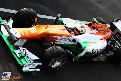 Una vez presentado el VJM05 en la mañana del viernes, su compañero Paul di Resta fue el encargado de probarlo en la pista de Silverstone. En boxes se quedaron el piloto alemán Nico Hulkenberg y el piloto reserva Jules Bianchi. Y siguiéndolo en pantalla, Nico no le perdió ningún detalle.